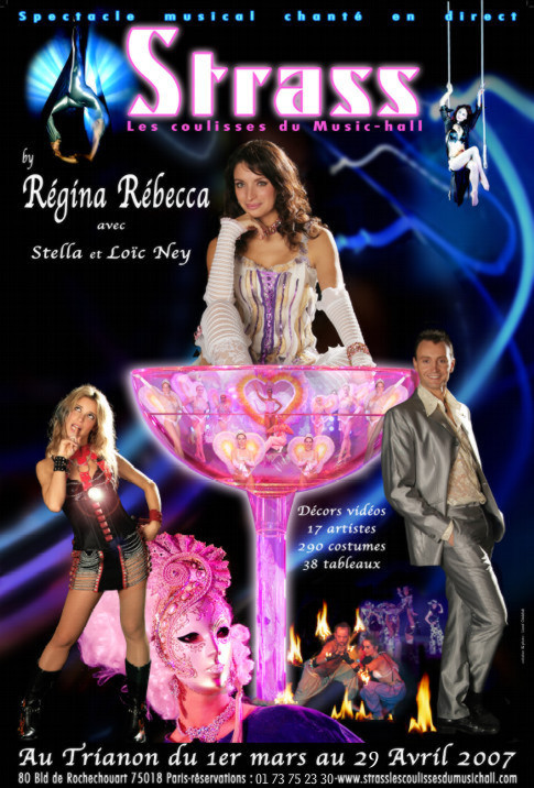 Show haut en couleur, avec costumes de prestiges dignes des plus grands cabarets parisiens. Ce spectacle est entièrement conçu (mise en scène, costumes et chorégraphies) par Régina Rébecca, présente dans le domaine de l'évènementiel depuis déjà 8 ans, et réputée pour ses prestations plus qu'originales et de très haute qualité.